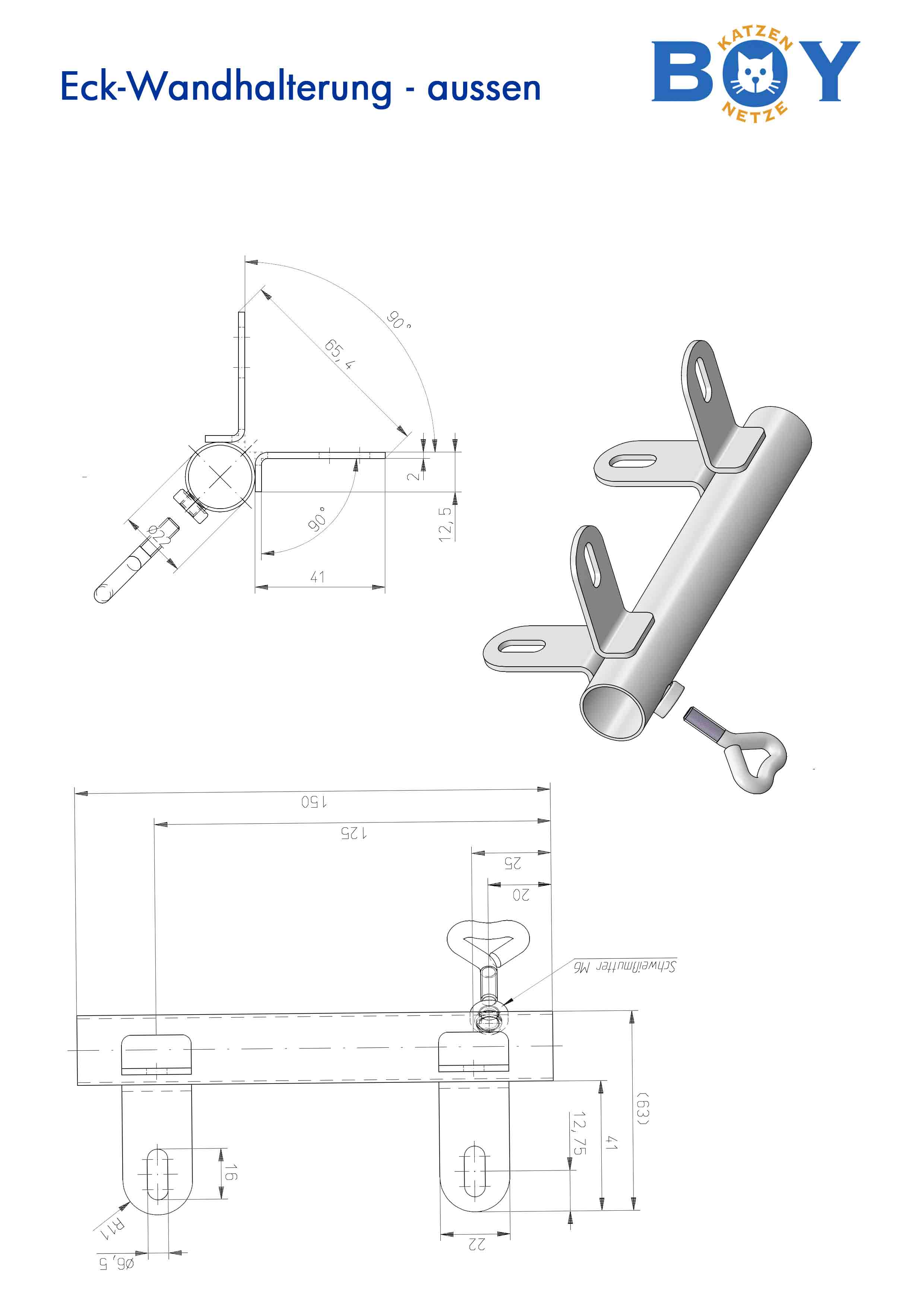 Mit dieser stabilen Eckhalterung werden unsere BOY-Teleskopstangen von AUSSEN an den Mauer- und Balkonecken befestigt. So kann ihre Katze die Balkonbrüstung begehen, ist geschützt und kann die Aussicht genießen.