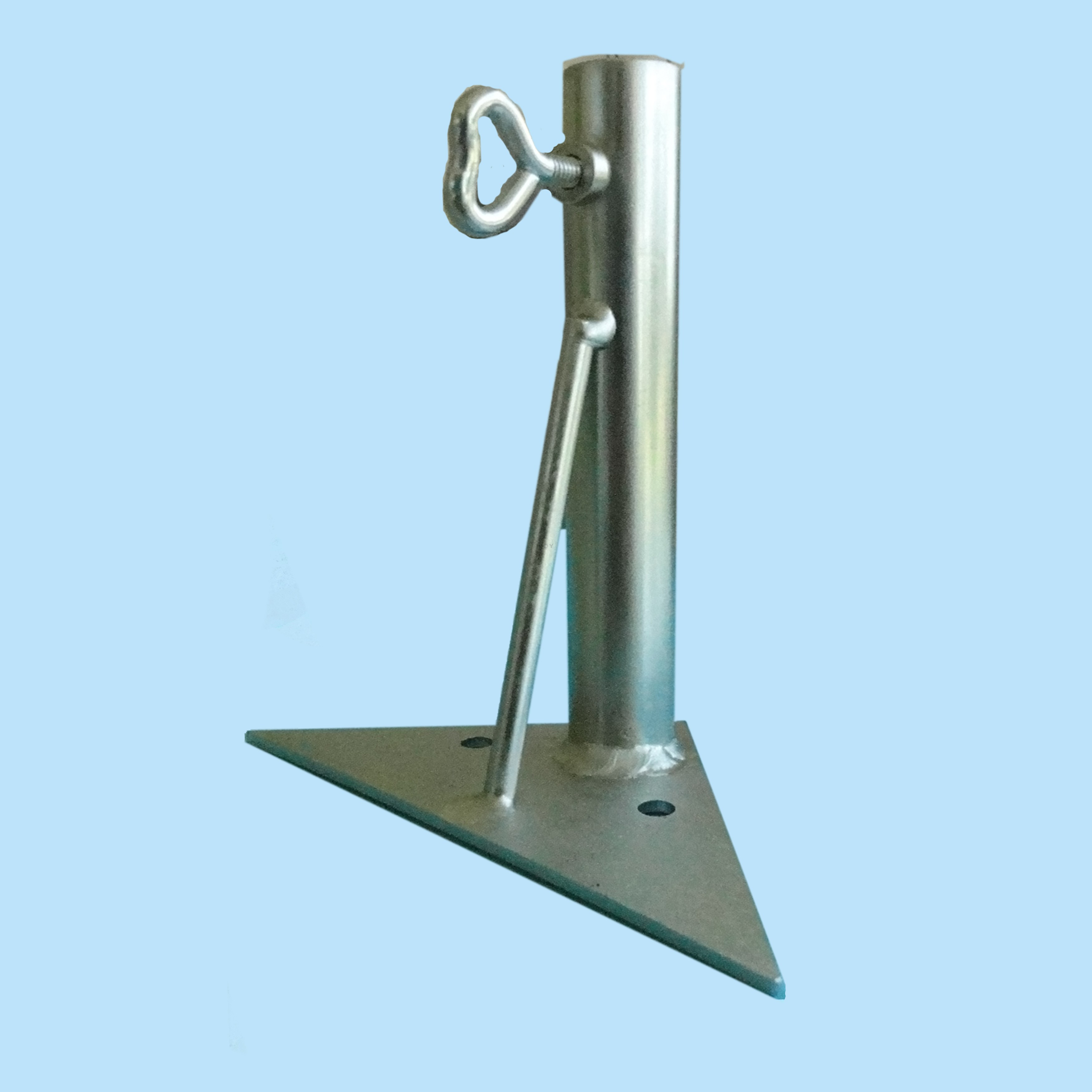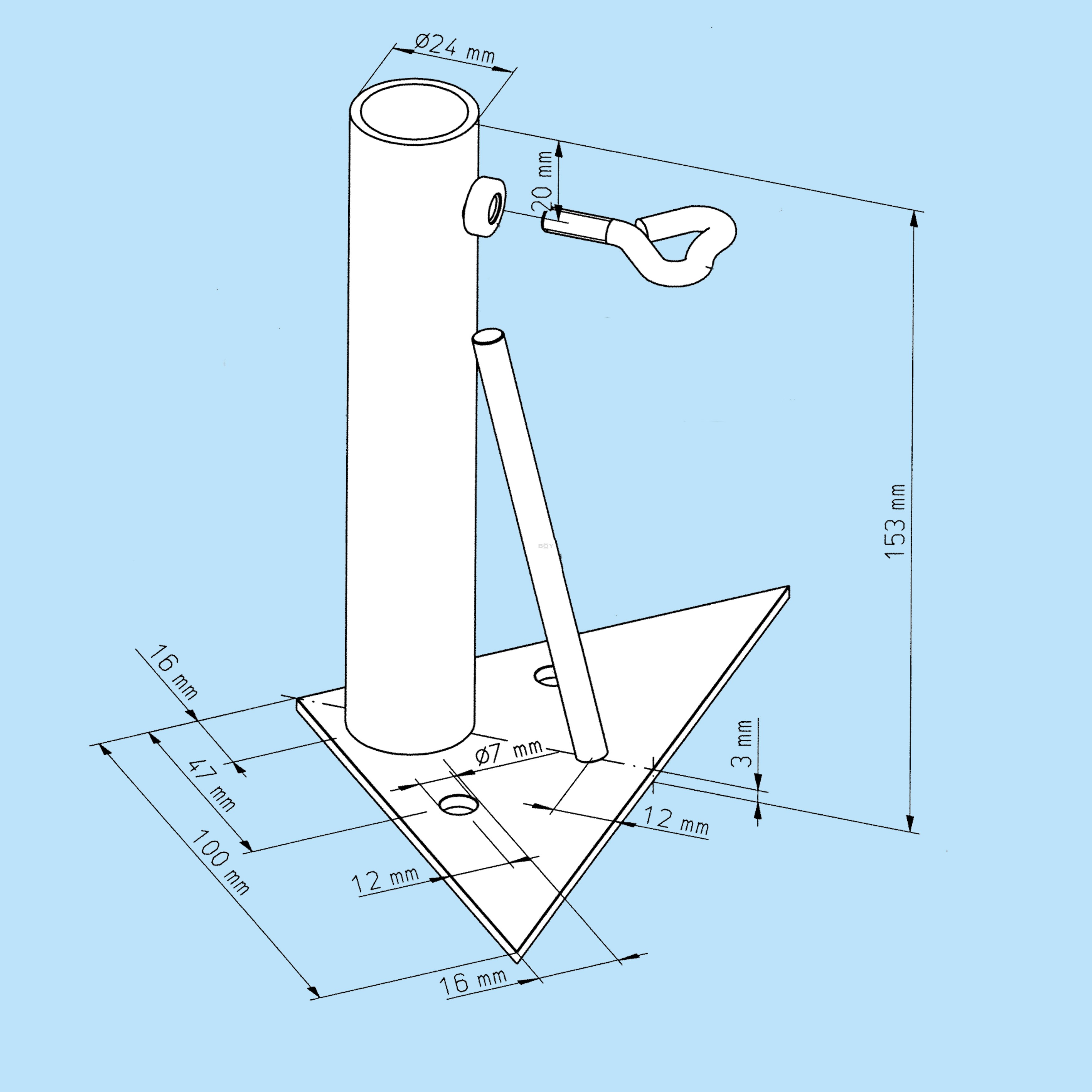 Diese Dreieckshalterung aus Edelstahl wird mit zwei kräftigen Schrauben in den Boden verankert (Nicht im Lieferumfang enthalten). Sie eignet sich nur für unsere Teleskopstangen zum Ausziehen.