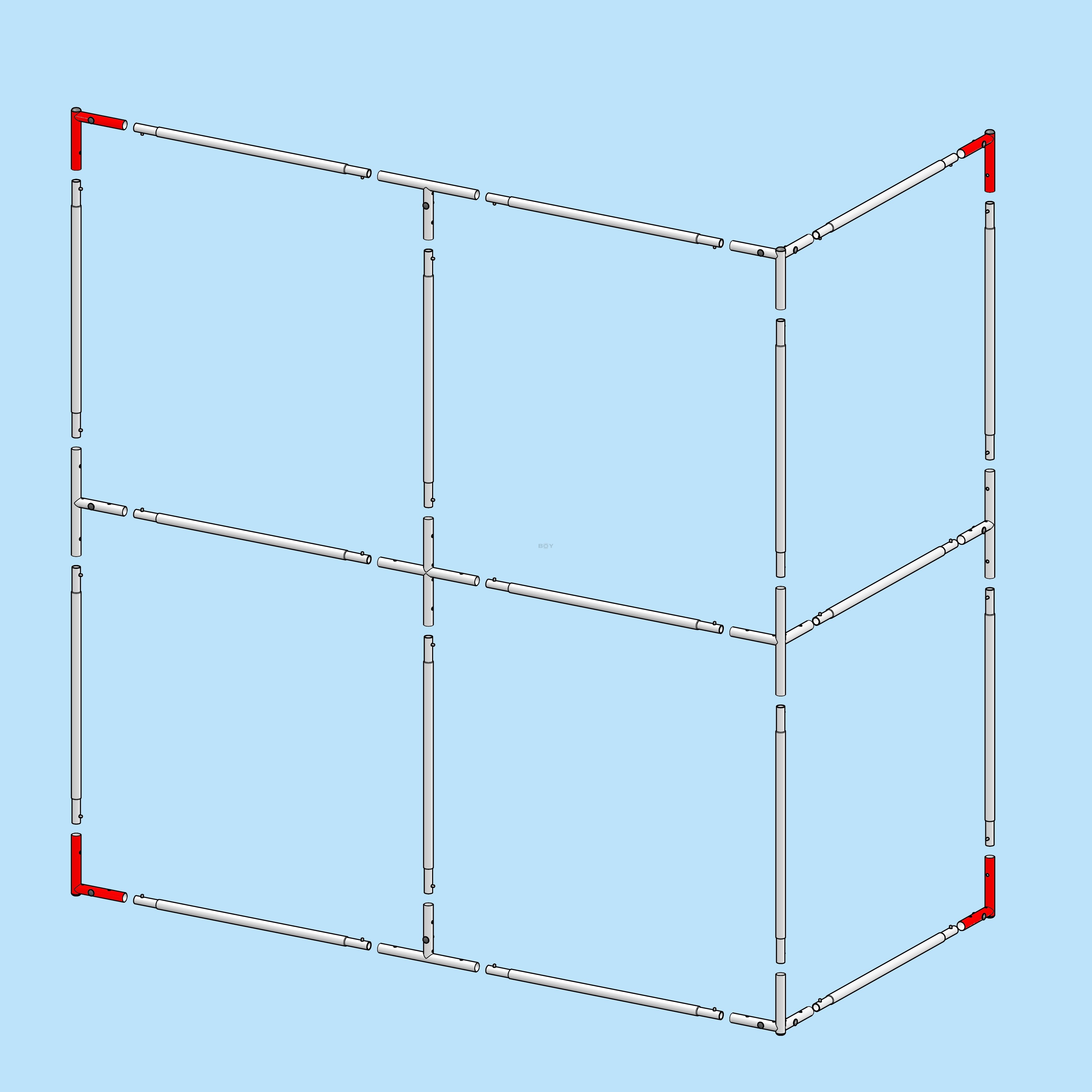 1) End-Verbindung 2) T-Verbindung 3) Eck-Winkel-Verbindung 4) Verbindungsstange 200cm