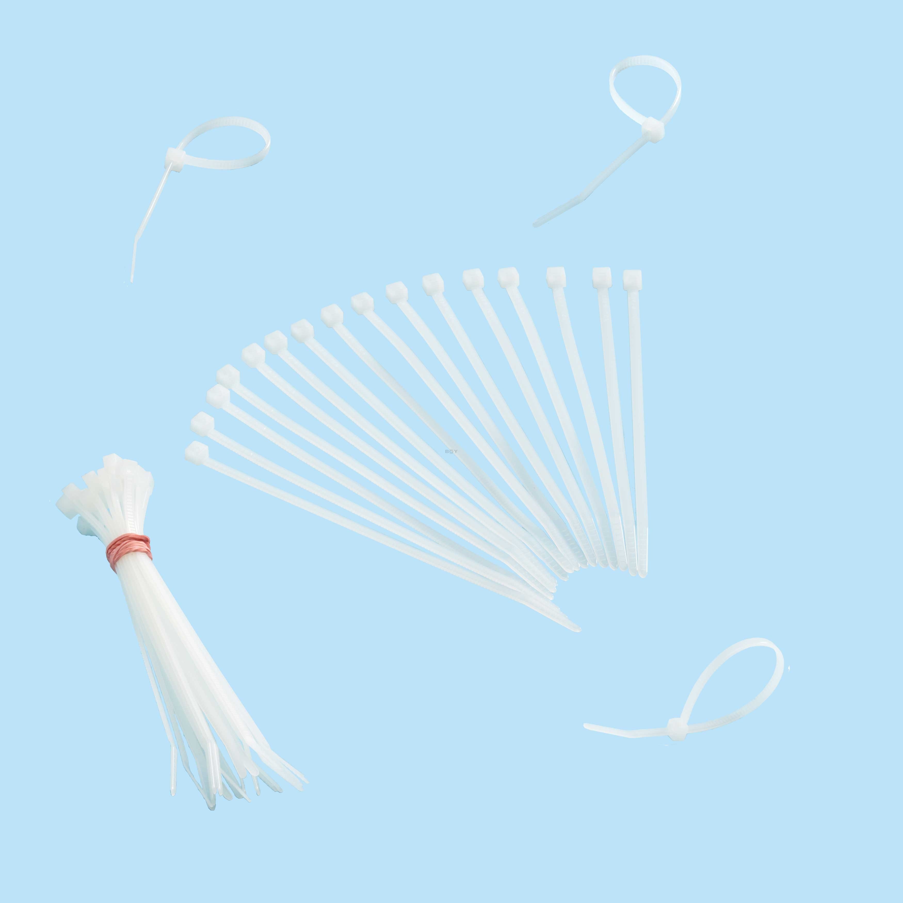 Netzbinder, 200mm lang und 4,6mm breit. Sie erleichtern das Befestigen des Katzennetzes an Balkon-Handläufen und Rohren bis zu einem Durchmesser von 50mm.