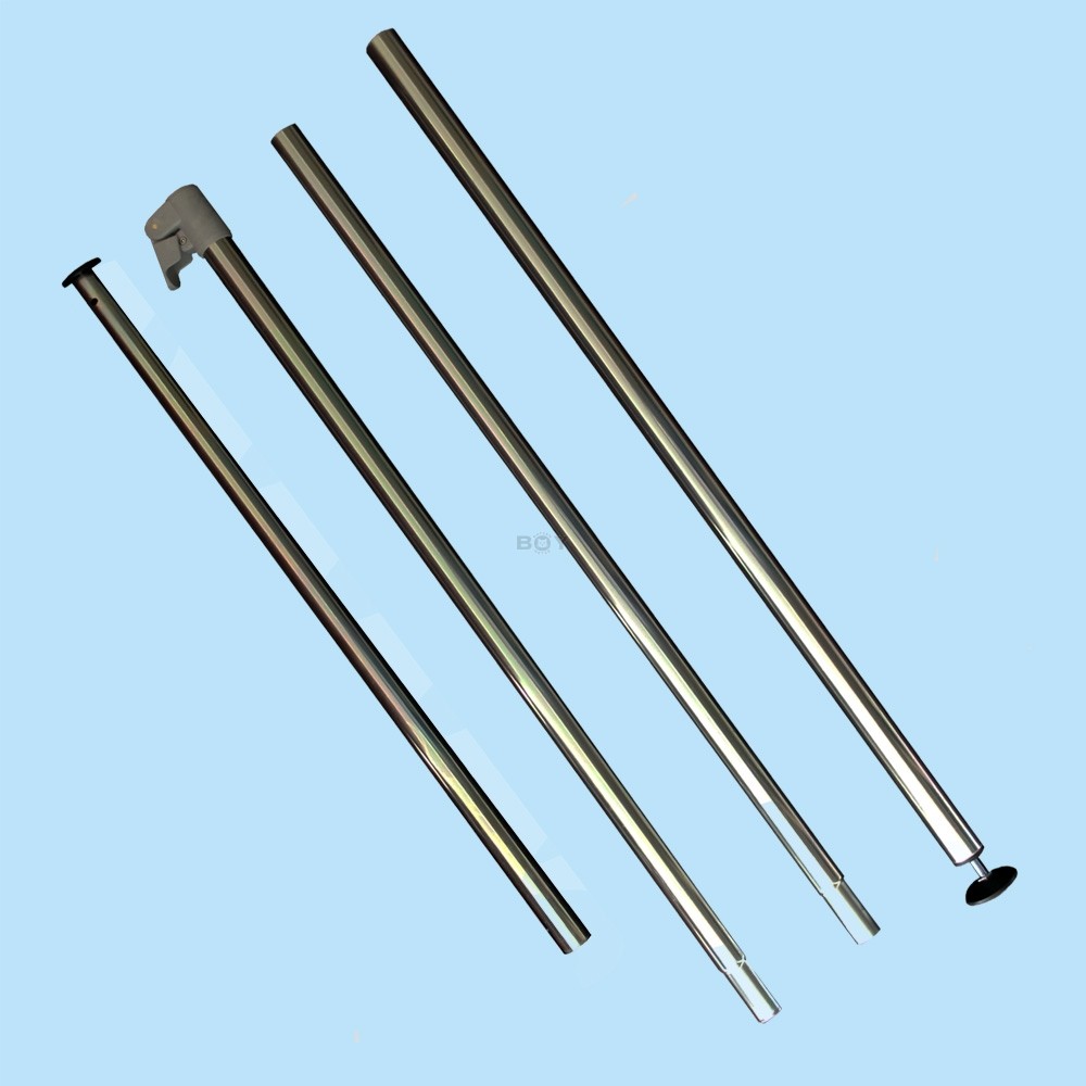 Strong telescopic rod for tensioning. Can be stretched up to a ceiling height of 350cm. So that the stability is guaranteed even at a clamping height of 350cm, it has a large diameter of 28mm. It is simply wedged between the floor and the ceiling. You do NOT need any additional brackets for attachment.