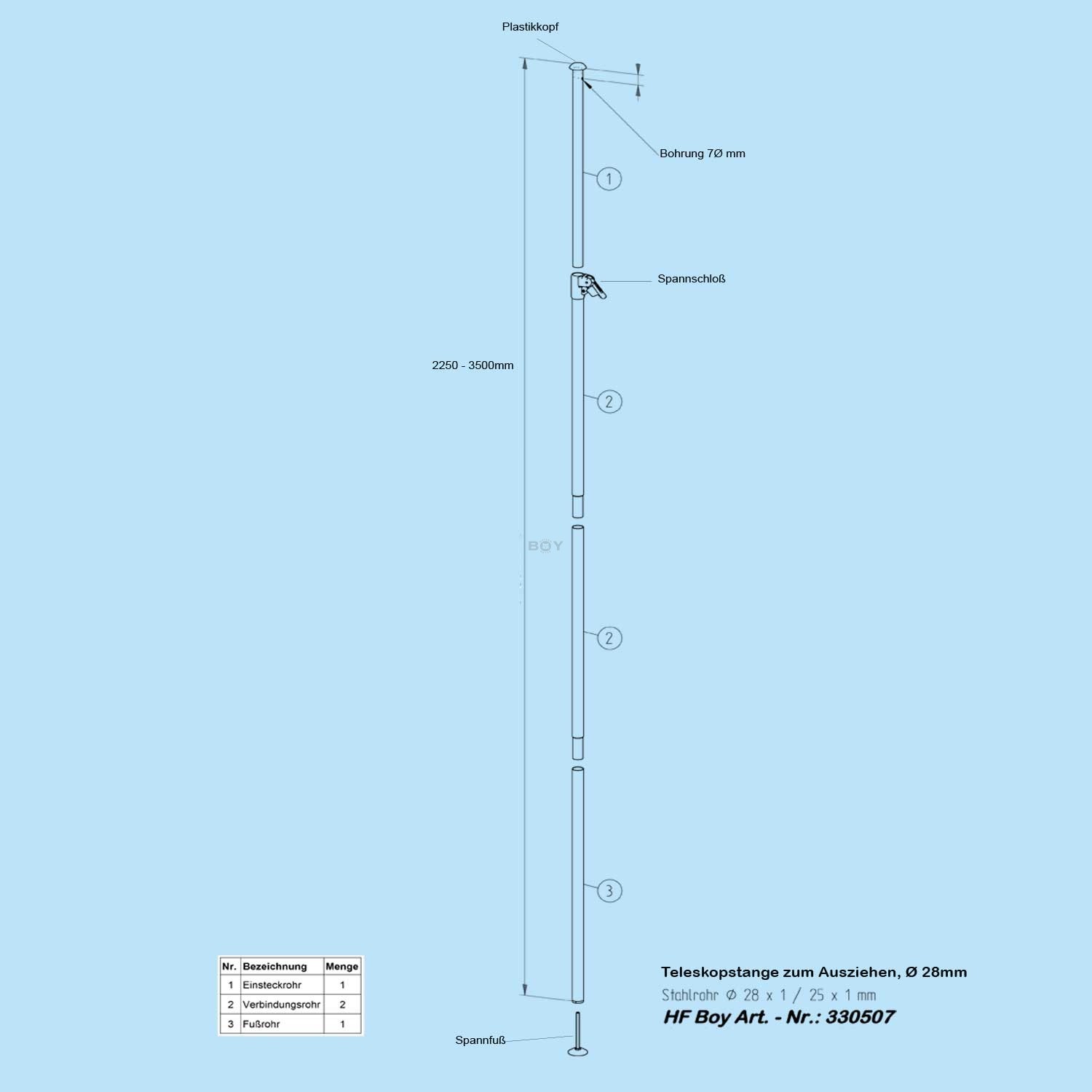 Product information "Telescopic rod for clamping up to 350cm, Ø 28mm - silver-colored galvanized"