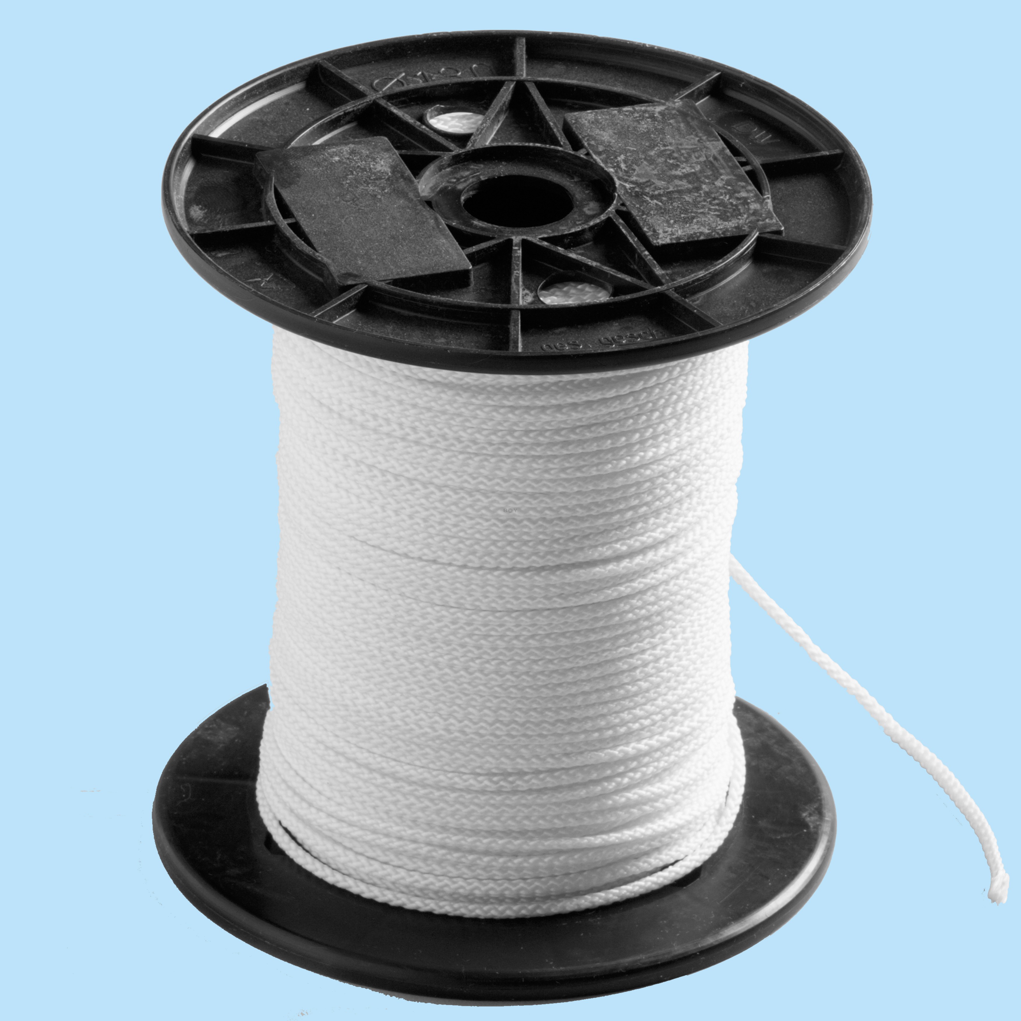 This braided line, also known as a tension line, has proven itself best over the past decades. It has a diameter of approx. 3 mm and has a very high tear resistance. Drawn in a spiral shape through the outer row of stitches, it not only prevents the stitches from tearing, but also gives the Boy cat net horizontal stability so that the net does not collapse at the top, between the telescopic rods. On the roll there are 100m braided line at a great price.