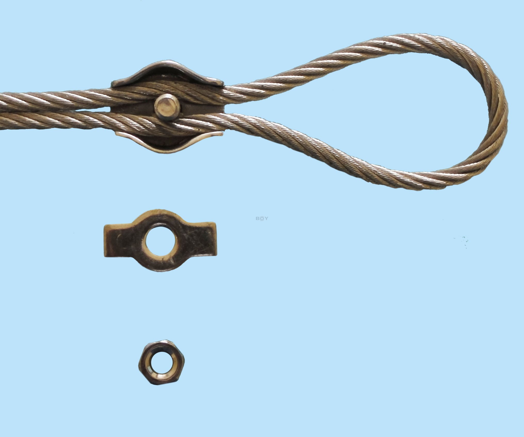 Stainless steel rope kit includes a high quality Stainless steel rope with a length of 4.50m and a diameter of 2mm. The Stainless steel rope is already equipped with a loop on one side. The metal wire has a tensile strength of about 100Kg.