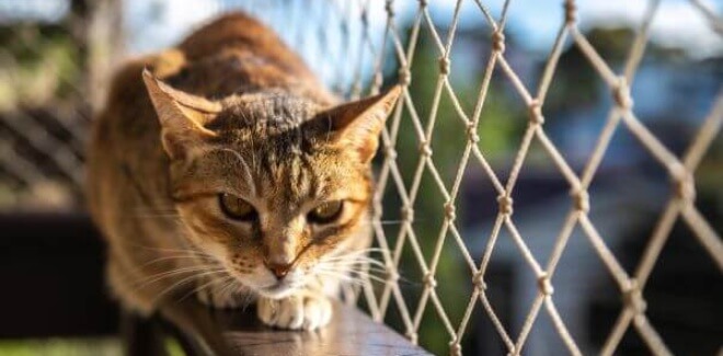 Boy-Katzennetze in 30mm Maschenweite eignen sich für kleinere und mittel große Hauskatzen und in diesem Fall auch für besonders temperamentvolle und freiheitsliebende Katzen. Damit ihre Katze nicht über das Netz klettern kann, sollte es entweder bis dicht unter die Decke montiert (z.B. mit unserem Rahmen-System) werden oder es sollte der Überkletterschutz für Teleskopstangen eingesetzt werden. Für eine dauerhafte Montage auf ihren Balkon oder Terrasse, auch ohne zu bohren, empfehlen wir Ihnen unser seit Jahren bewährtes Montage-Zubehör. .
